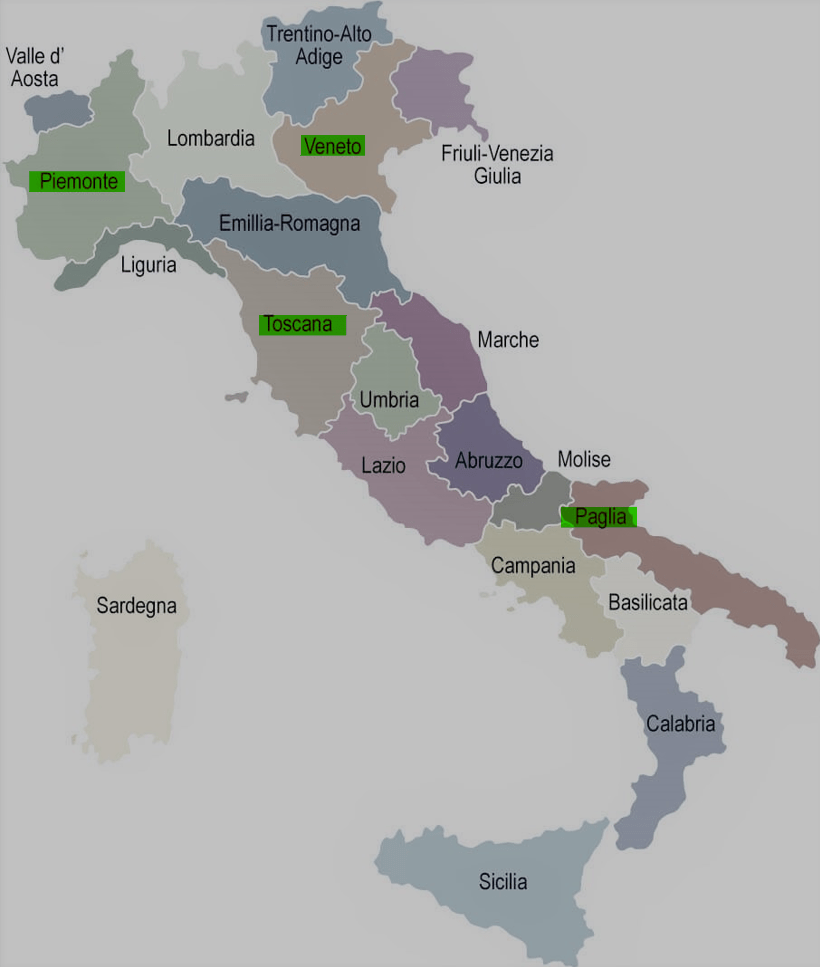 Atualmente na Itália as principais regiões produtora de vinho são, Toscana, Piemonte, Vêneto e Puglia.